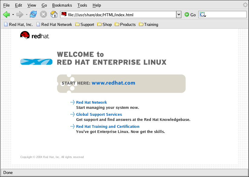 Once you have configured your Internet connection (refer to Chapter 5 Connecting to the Internet), you are ready to browse the Internet. Red Hat Enterprise Linux comes with several Web browsers, graphical applications that use your Internet connection to access the World Wide Web: news, research, shopping, banking, and more. This chapter briefly explains how to surf the Web using Firefox. For information about using the Konqueror Web browser, refer to Section A.6 Browsing the Web with Konqueror.
